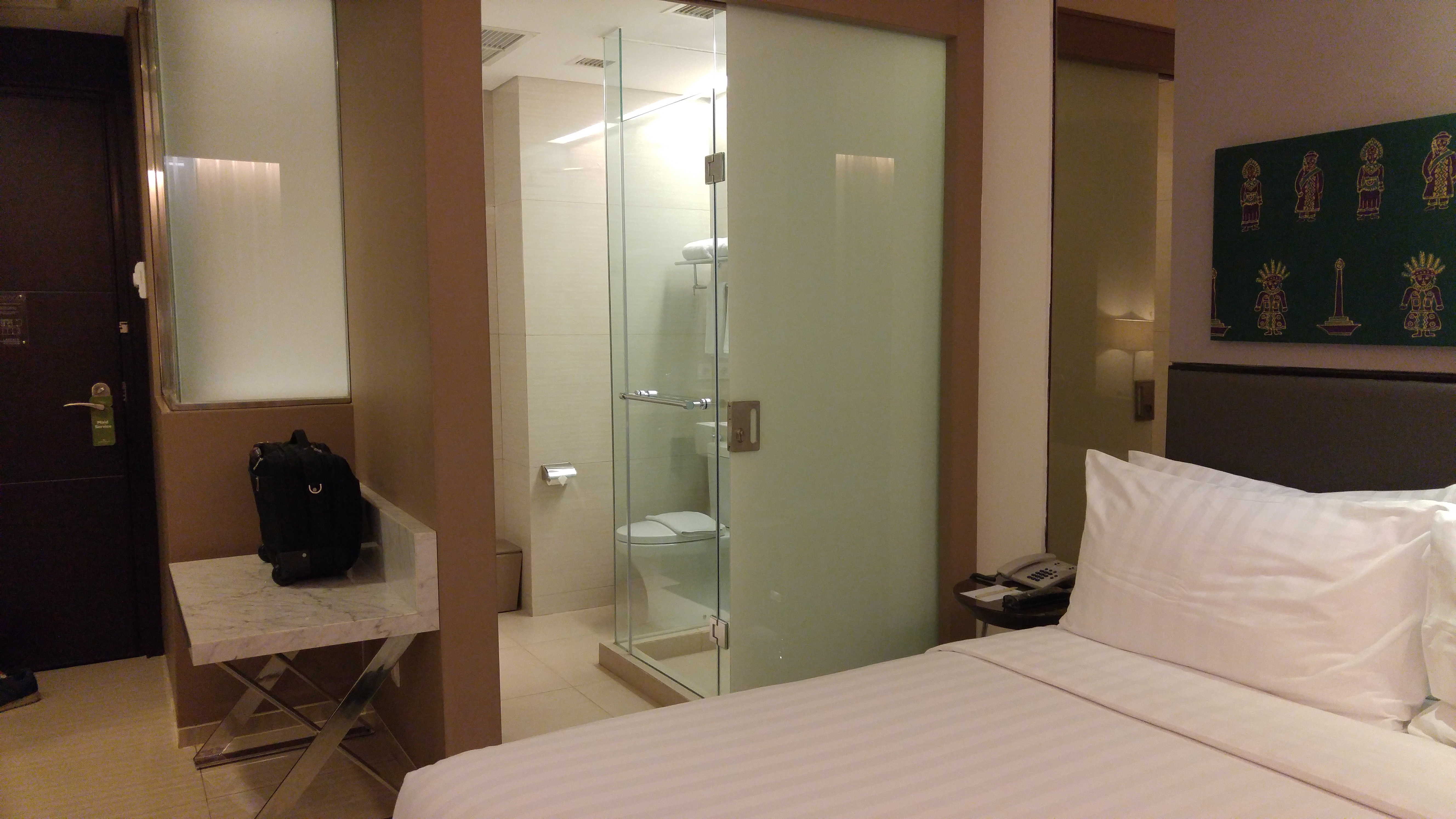 The bathroom is modern and has a standing shower that is separated from the rest of the bathroom by a glass shower screen. One thing that has always irked me (and many other fellow travellers) when I stay in hotels is if the water pressure in the shower is weak and the hot water is not hot enough. So you end up taking a shower under a limp stream of lukewarm water and that is always irritating. Iâm glad to say that at Hotel Santika Premiere Hayam Wuruk Jakarta, both the water pressure and hot water supply performed admirably and well, I enjoyed my shower đ